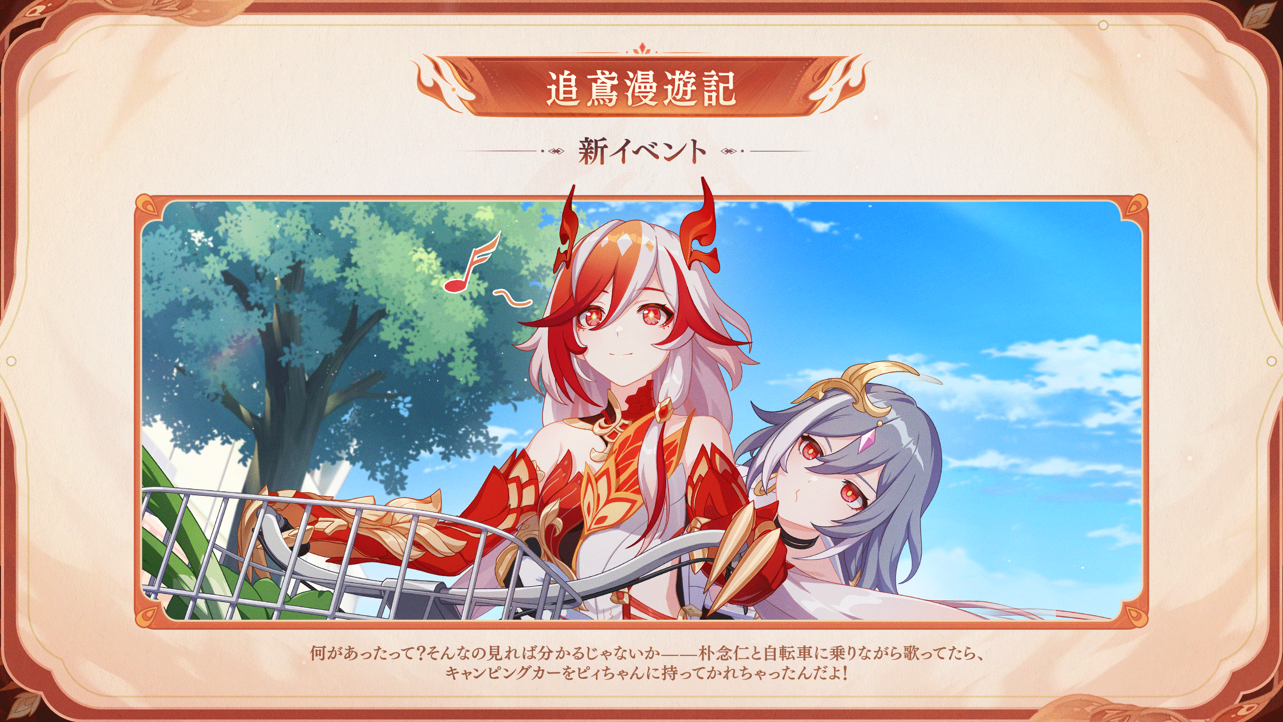 Ver.7.2にてテーマイベント「追鳶漫遊記」開催!フカや識の律者たちと一緒に旅し、ボールと記念品を集めて、敵からキャンピングカーを奪い返しましょう!