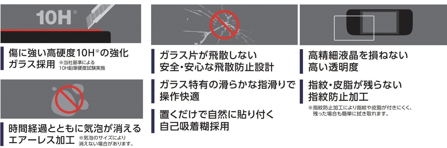 ■表面硬度10Hの強化ガラス採用により、保護ガラス表面の傷を防止します。