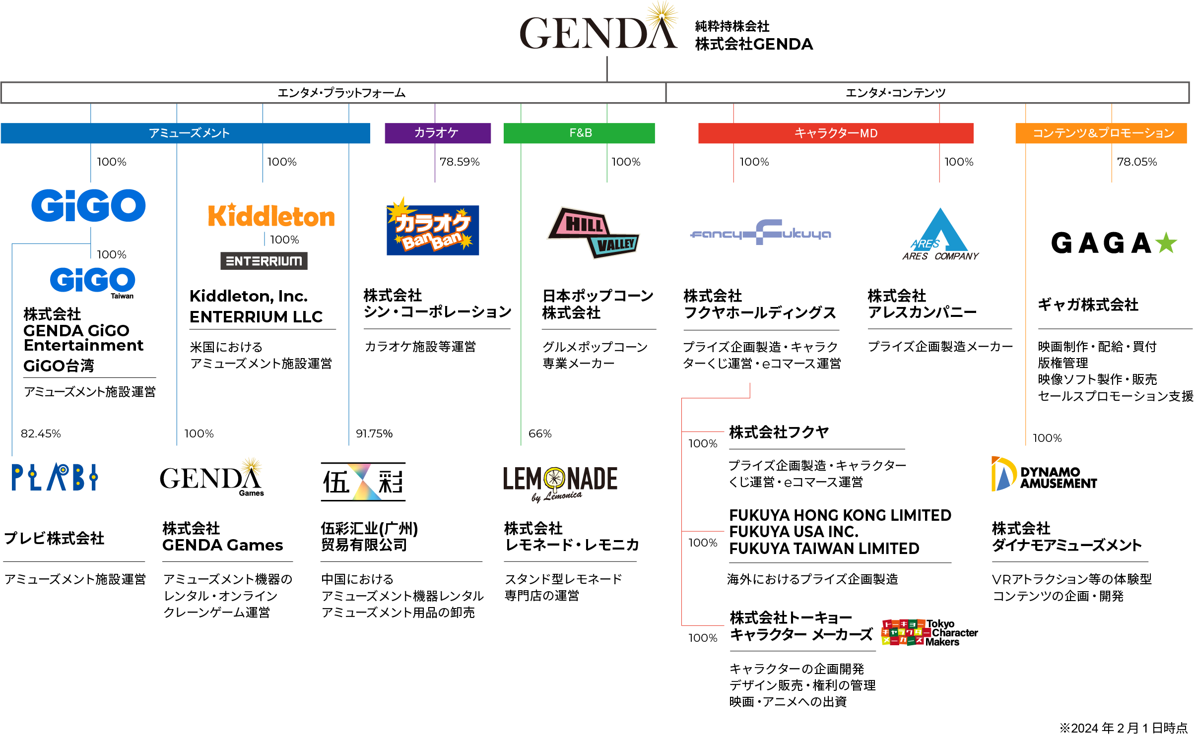 株式会社GENDA(本社:東京都港区、代表取締役会長:片岡 尚、代表取締役社長:申 真衣、以下「当社」)は、2024年2月1日付で新たに1名の執行役員選任を予定しています。また、「キャラクターMD(マーチャンダイジング)事業最高責任者」を新設することで、グループ全体のガバナンス強化及び事業展開の加速と拡大を実現し、企業価値の更なる向上を目指します。今後の経営体制をお知らせいたします。あわせて、新たにグループインした株式会社フクヤホールディングス、株式会社フクヤ、株式会社シン・コーポレーション、プレビ株式会社の新経営体制、及びグループ企業の重要人事についてお知らせいたします。