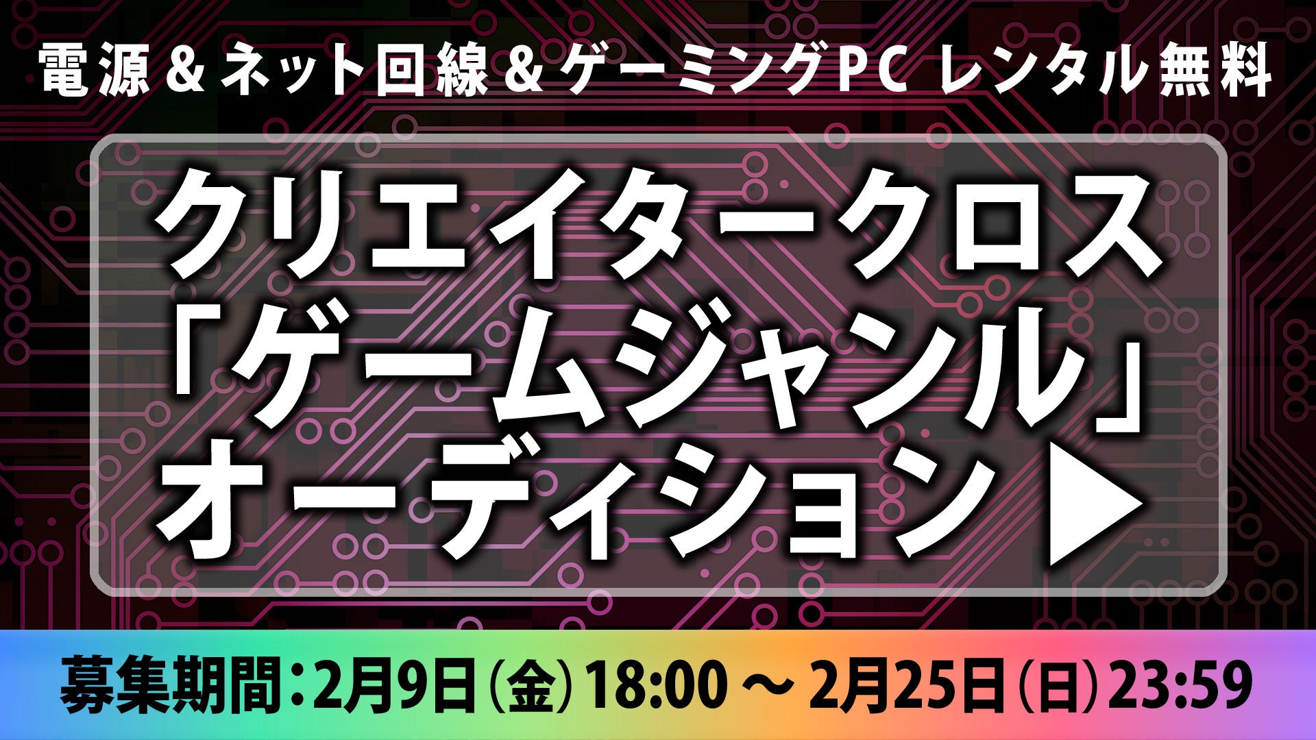 ゲーム実況に特化したクリエイタークロス『クリクロゲームオーディション』超会議2024の出展スペースを懸けて、2024年2月9日(金)~25日(日)の期間、ゲーム実況者のオーディションを開催します!!