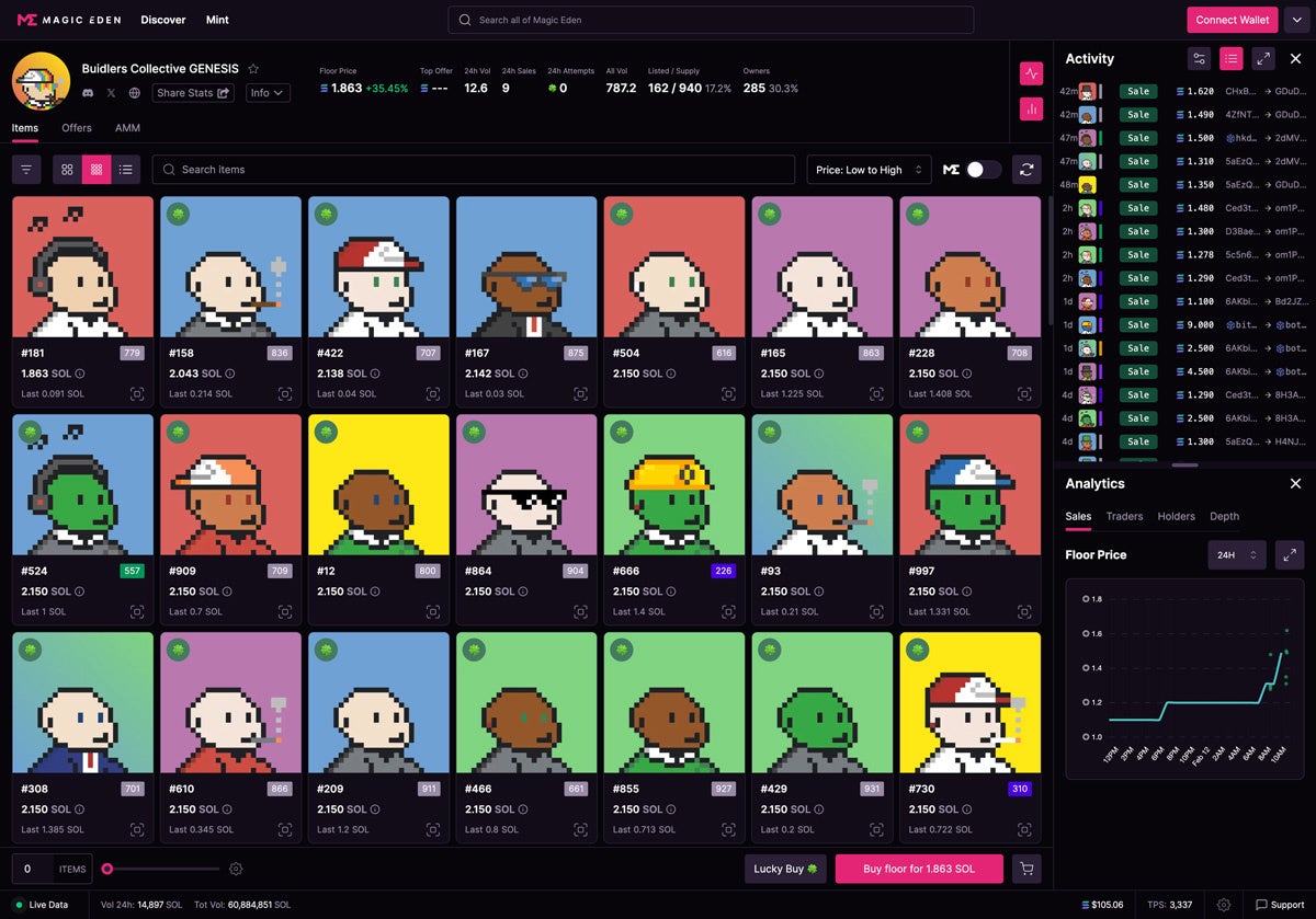 最新の NFT カードパック「Buidlers Guild Alpha」が、Magic Eden と Tensor の NFT マーケットプレイスに上場