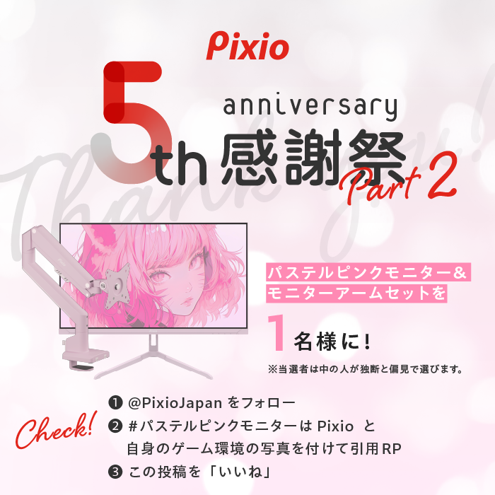 ②「#Pixio5周年おめでとう」をつけて下記キャンペーンポストを引用リポスト