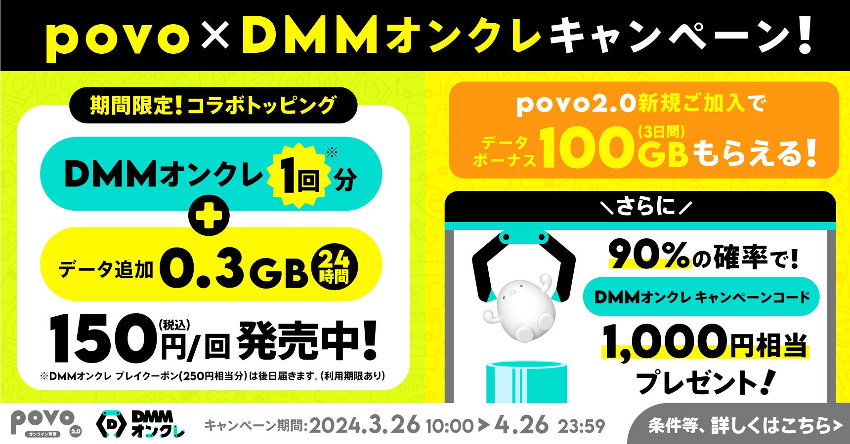 「DMMオンクレ×povo2.0」コラボキャンペーン詳細