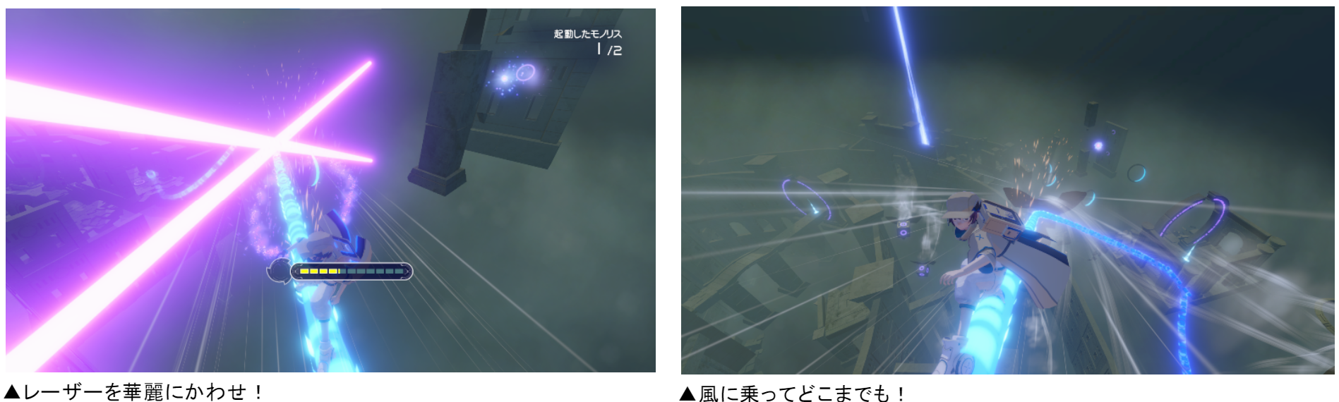 ある時はレーザーを避け、ある時は風を利用しながら、先へ進もう。