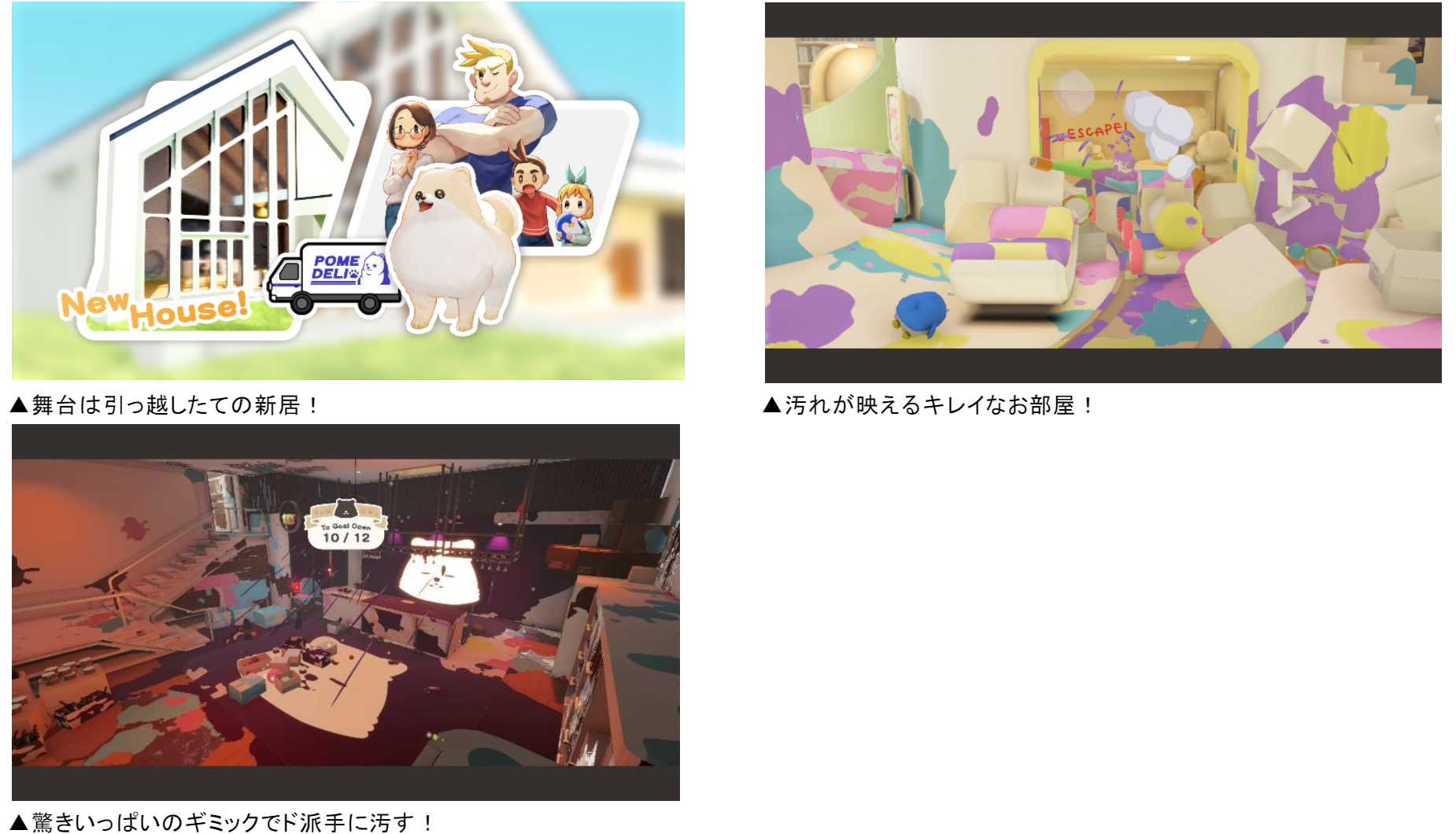 『DORONKOWANKO (どろんこわんこ)』は、ポメラニアンが綺麗なおうちをはちゃめちゃに汚しまわるどろんこアクションゲーム。縦横無尽に走って、汚して、全てのお部屋を泥まみれにしよう!