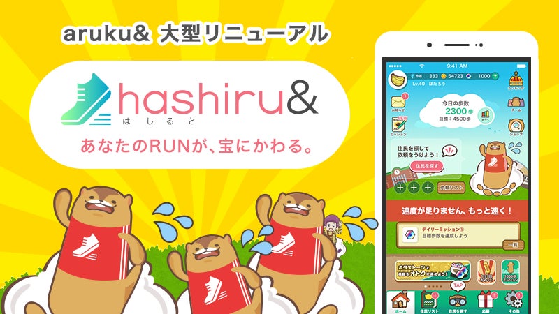 「aruku&(あるくと)」の公式キャラクターが「歩太郎(ぽたろう)」から「走太郎(そうたろう)」に改名します。これまでのんびり歩くゆるいフォルムの「ぽたろう」から、必死になって走る「そうたろう」になり、みなさんのランニングを応援します。