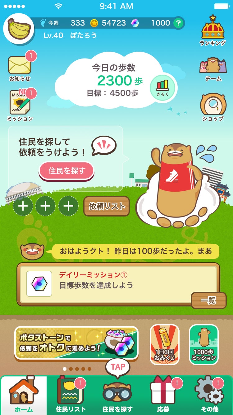 なお、キャンペーンや住民の依頼、賞品応募など基本的な操作に変更はございません。現在aruku&をご利用のお客様は新たにアプリをダウンロードする必要はありません。アプリリニューアルに伴い、保持しているポイントやカードなどにつきましては自動的に新アプリへ引き継がれますのでご安心ください。
