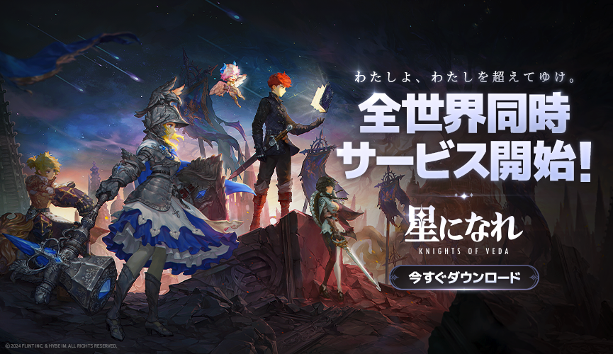 BTSやSEVENTEEN、NewJeansなど世界的アーティストを擁するエンターテインメントライフスタイルプラットフォーム企業HYBE(所在地:韓国ソウル、CEO:パク・ジウォン)のゲーム事業部門であるHYBE IM(所在地:韓国ソウル、代表取締役:チョン・ウヨン)は、同社がパブリッシングをし、FLINT(代表:キム・ヨンモ)で開発中の新作ゲーム「星になれ ヴェーダの騎士たち」は4月2日、全世界約120の国と地域で正式サービスを開始いたしました。