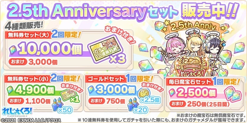 2.5th Anniversaryを記念して、本日より最大100連分、1日1回10連無料で引くことができるガチャを開催いたします!