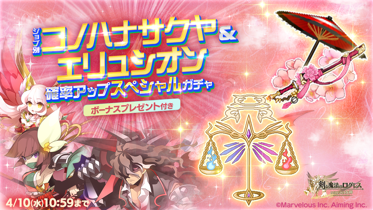 ■強力な武器を手に入れよう!「ジョブ別 コノハナサクヤ&エリュシオン確率アップスペシャルガチャ」販売中!
