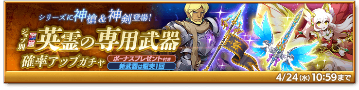 ■シリーズに神槍&神剣登場!「ジョブ別 英霊の専用武器確率アップガチャ」販売中!