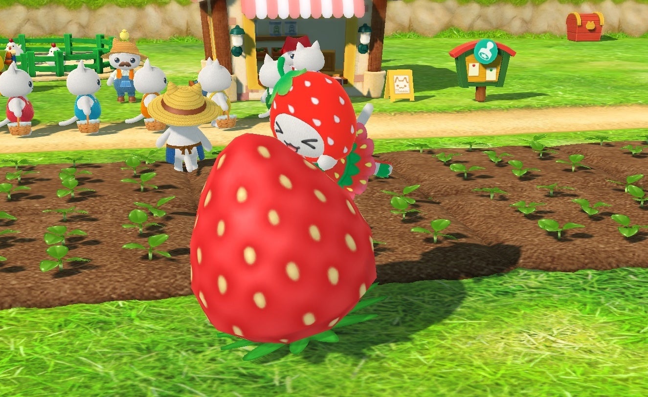 イチゴをイメージした「いしょう」が登場しています。この「いしょう」を着たにゃんこは特別な動きをしてくれますので、「イチゴざんまいふくびき」を回して手に入れましょう!