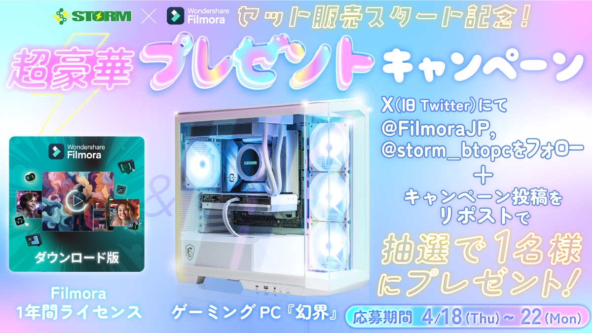 大人気ゲーミングPC「幻界 (genkai)」の STORM(株式会社アイティーシー)と動画編集ソフト「Filmora(フィモーラ)」を手掛けるワンダーシェアーソフトウェアがコラボキャンペーン実施中