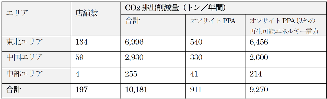 今後は、オフサイトPPAによる再生可能エネルギー電力の導入店舗を拡大し、CO2排出量削減量の増加を目指します。