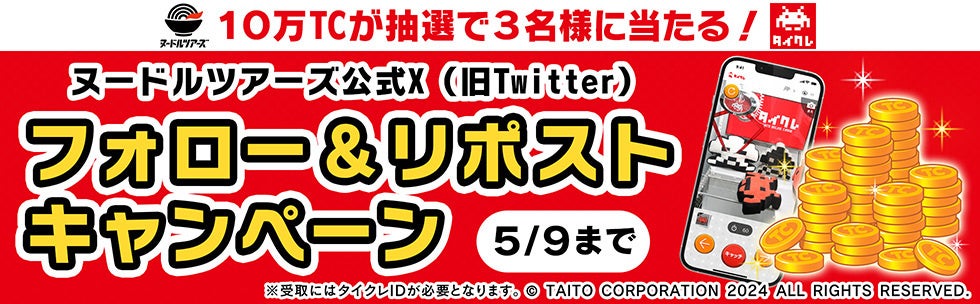 2)『ヌードルツアーズ』公式Xをフォロー&リポストでタイトーコイン(TC)が当たる!