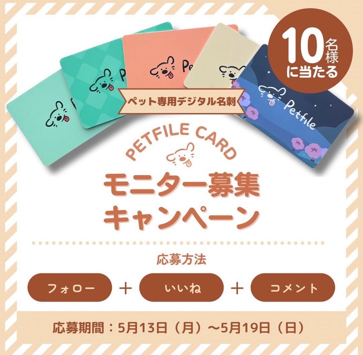 また、今回モニターとして当選された皆様には、ご提供させていただいた「Petfile Card」が、ペットと暮らす方々にとって、より魅力的なプロダクトとしてリリースできるよう、可能な範囲でフィードバックをいただき、サービスの改善に活用させていただきます。