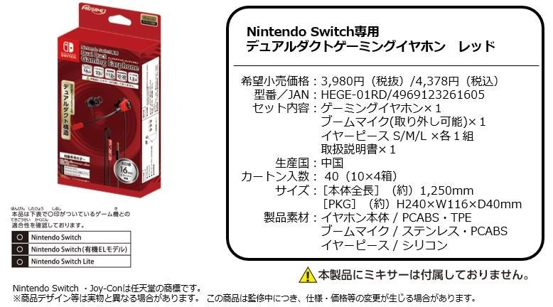 Nintendo Switch専用デュアルダクトゲーミングイヤホン レッド