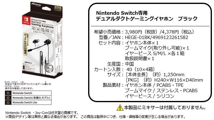 Nintendo Switch専用デュアルダクトゲーミングイヤホン ブラック