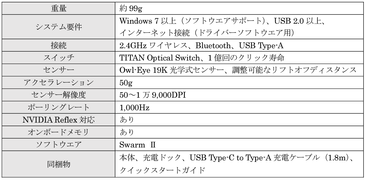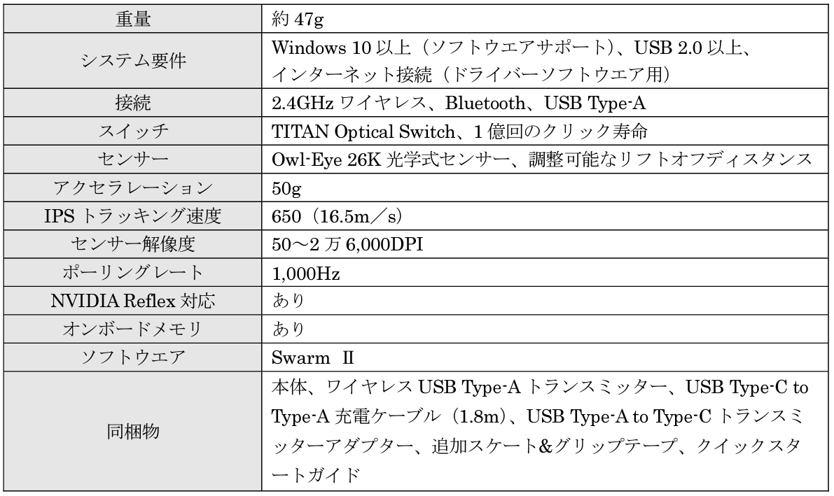 ・650IPS(16.5m/s)トラッキングスピードのOwl-Eye 26K DPIセンサーを搭載