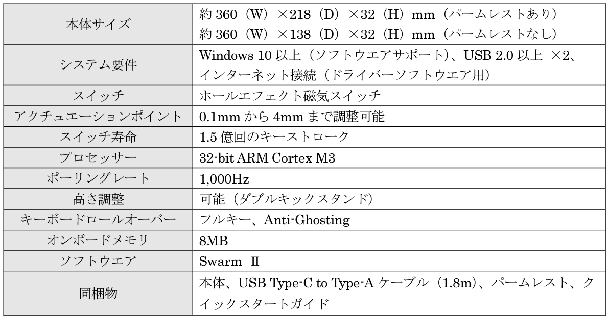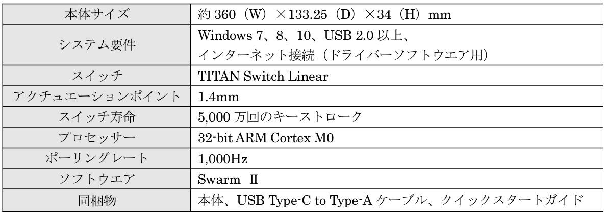 ・Swarm ⅡソフトウエアでRGBライティングやキーの割り当て、調整が可能