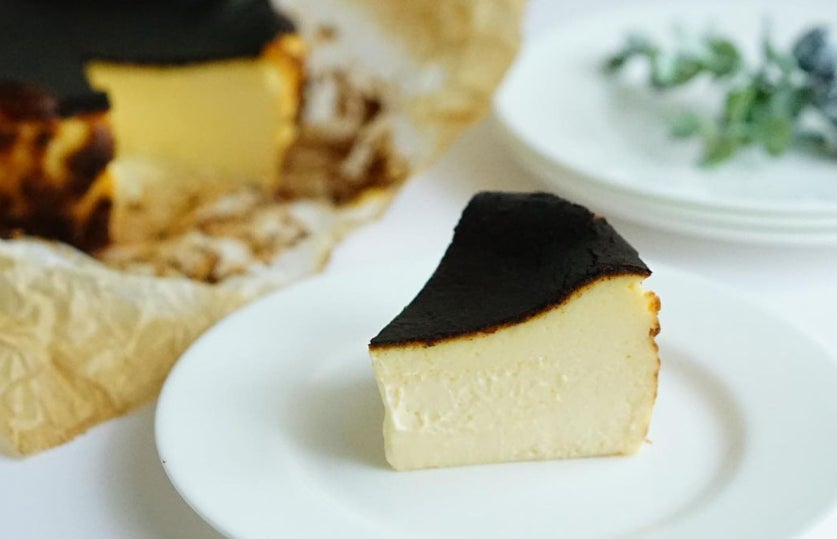 Burnt(焼けた・焦げた)表面の香ばしさと、程よく火の通った濃厚でなめらかな生地が絶妙にマッチした、本格レシピのバスクチーズケーキ。