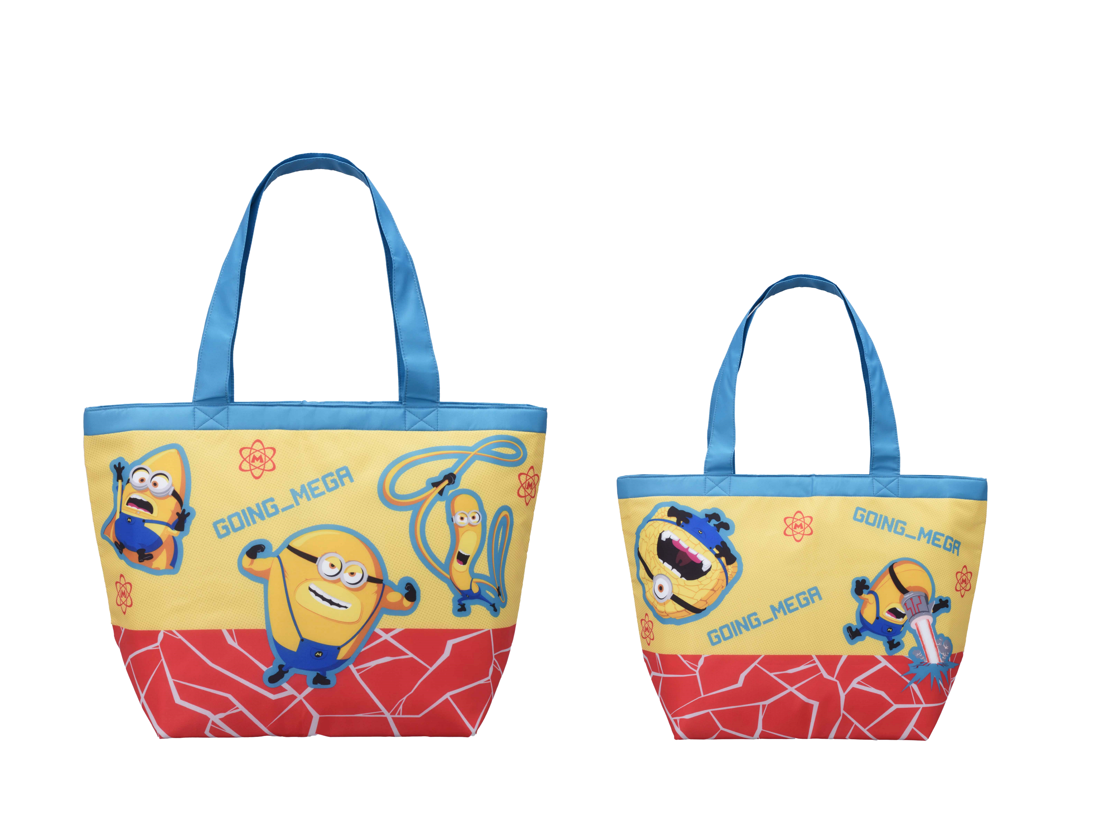 怪盗グルー、グルーJr.やミニオンたちのイラストが描かれたアウトドアにぴったりな大容量の保冷バッグ。