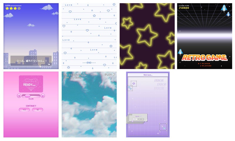 ⑥ 「平成×デジタル」セット:ゲーム・カメラ・インターネットなど平成時代のデジタルコンテンツを思わせるデザイン