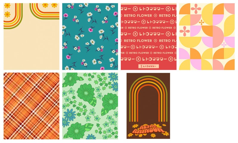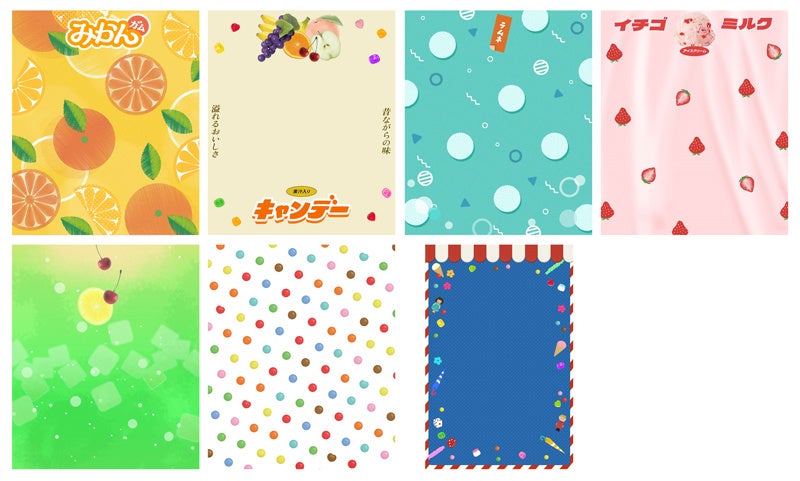 本モードに搭載するのは、当時の流行を凝縮した“レトロ可愛い”背景セットと選んだセットに応じたシールデザイン(各6種類)。歌謡祭のアイドルステージを模したようなデザインや、昔懐かしい家電のデザインを思わせる昭和らしいモチーフ、“プロフ帳”や女児向けキャラクターのトレーディングカードといった平成の流行を彷彿とさせるキラキラファンシーな柄など、思わず撮影したくなるデザインを多数ご用意しました。さらに、背景にぴったりのシールデザインと組み合わせれば、CDジャケットや駄菓子屋の看板、ゲーム機器などを連想させる完成度の高い“レトロ可愛い”プリに仕上がります。