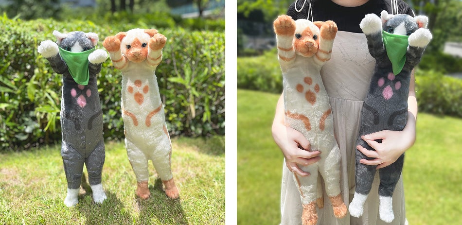 まるで本物のようなリアルな造形で、たっち姿やつぶらな瞳がとても可愛い「たっちぃZooにゃんこ」と、「モンスターハンター」シリーズからアイルーとメラルーがまさかのコラボレーション! 2本足で立つ姿は、まさしくハンターさん達を追いかける姿そのもの…。