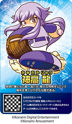 7月から全国のアミューズメント施設で稼働しているメダルゲーム『パワフルプロ野球 開幕メダルシリーズ!』では、「パワプロの日」に合わせて、「実況パワフルプロ野球」シリーズの登場人物「神高 龍」をスカウトできるカード*2をアミューズメント施設にて配布するキャンペーンを開催中です。
