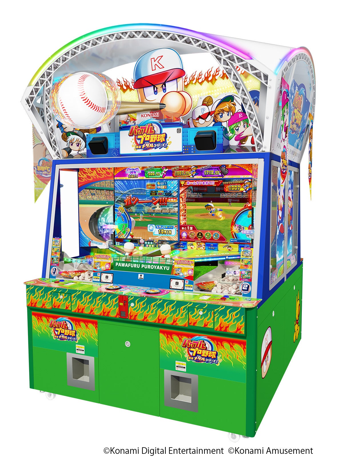 『パワフルプロ野球 開幕メダルシリーズ!』は、メダルゲームの定番である「プッシャーゲーム」をプレーしながら、「パワフルプロ野球」のキャラクターたちと試合を行い、勝利を目指すメダルプッシャーゲームです。