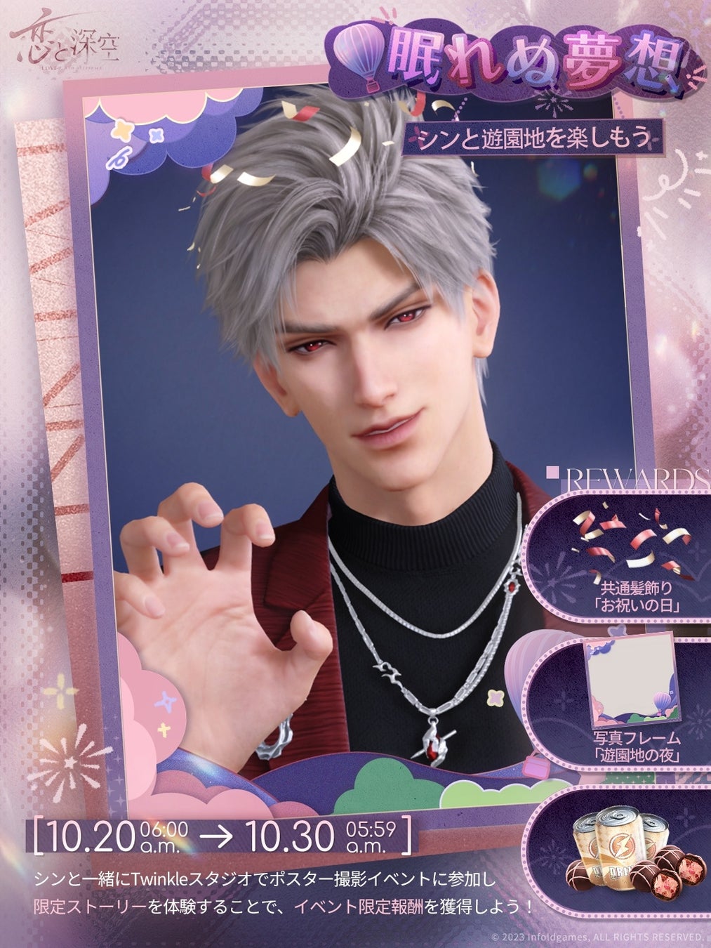 INFOLD PTE. LTD.は、全世界1億DLを突破した『恋とプロデューサー』の世界観を継承した完全新作恋愛シミュレーションゲーム『恋と深空』において、10月20日(日)6時よりイベント「灼熱の祝福」を開催することをお知らせいたします。