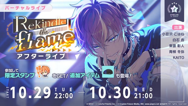 「プロセカアフタートーク Rekindle the flame編」を2024年10月29日(火)21:30よりYouTube Liveにて生配信いたします。