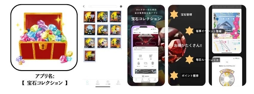 宝石キャッチャーで獲れた宝石は、クレーンゲームセンター『エブリデイ』を運営する株式会社東洋が宝石事業部「東洋ルース」で提供しているスマートフォン向け宝石箱アプリ「宝石コレクション」を無料でダウンロードし、アプリ内に登録しコレクションすることもできます。