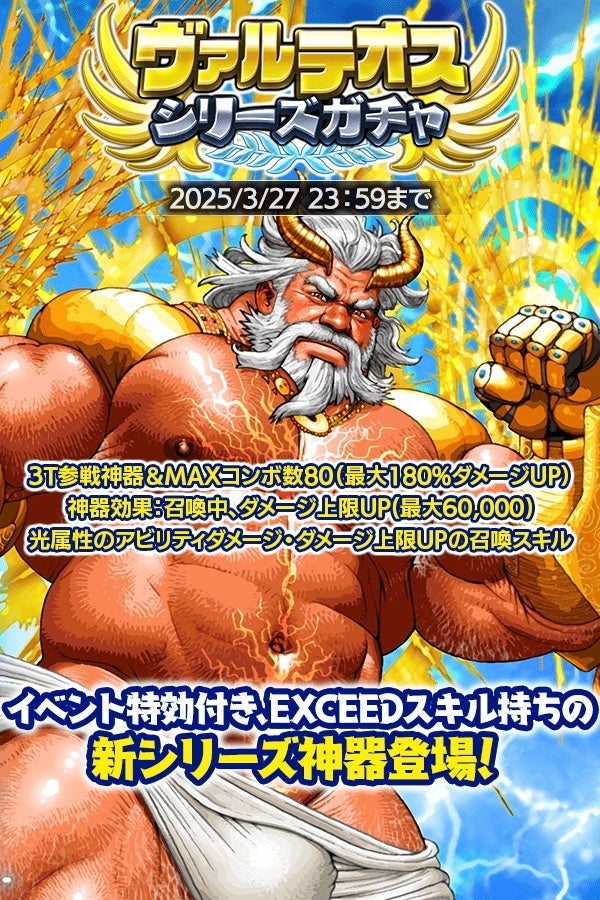 イベント特攻付き、EXCEEDスキル持ちの新シリーズ神器が登場する「ヴァルテオスシリーズガチャ」が開催!