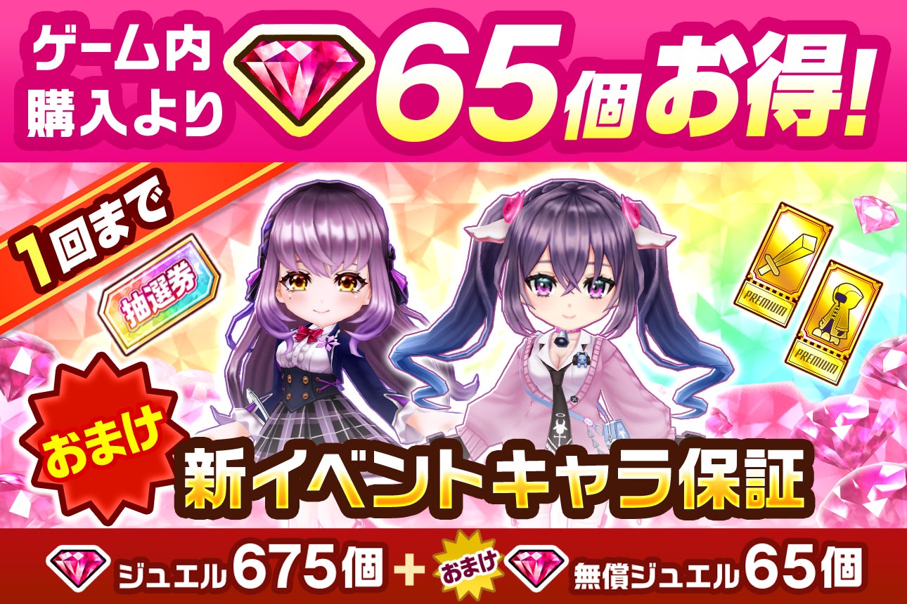 内容物:「ジュエル」675個、「無償ジュエル」65個、「新イベントキャラ保証」など