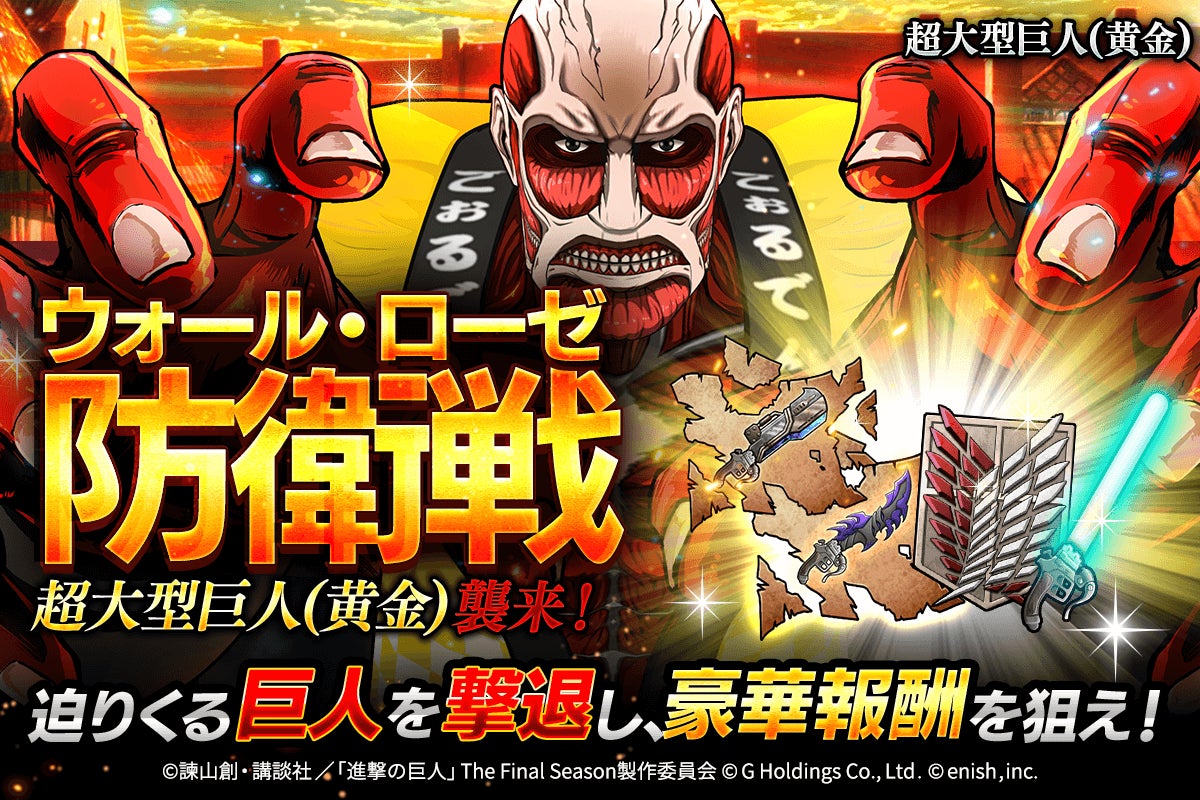 2025年4月18日(金)より期間限定で限定でウォール・ローゼ防衛戦に超大型巨人(黄金)が襲来!仲間と力を合わせて豪華報酬を手に入れよう!
