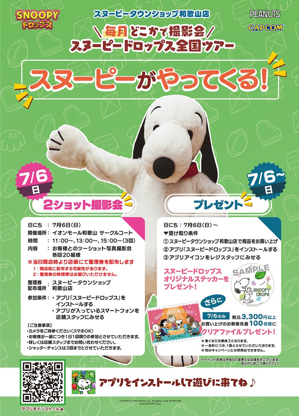 撮影会当日より、レジにて商品お買い上げの際に『スヌーピードロップス』のアプリアイコンを見せると、「スヌーピードロップス オリジナルステッカー」がもらえます!