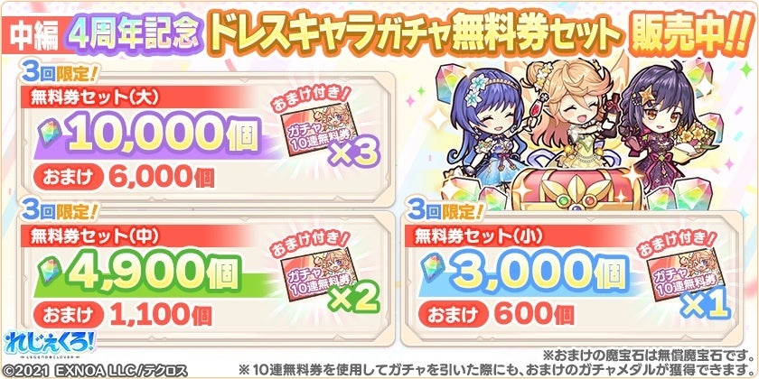 ※4周年記念ドレスキャラガチャ中編 10連無料券について