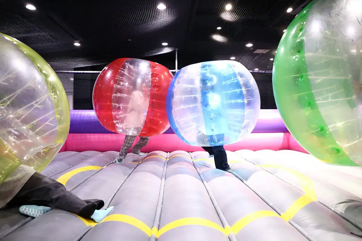 巨大バブルボールに入り、相手を土俵の外へ押し出す対戦アクティビティ。