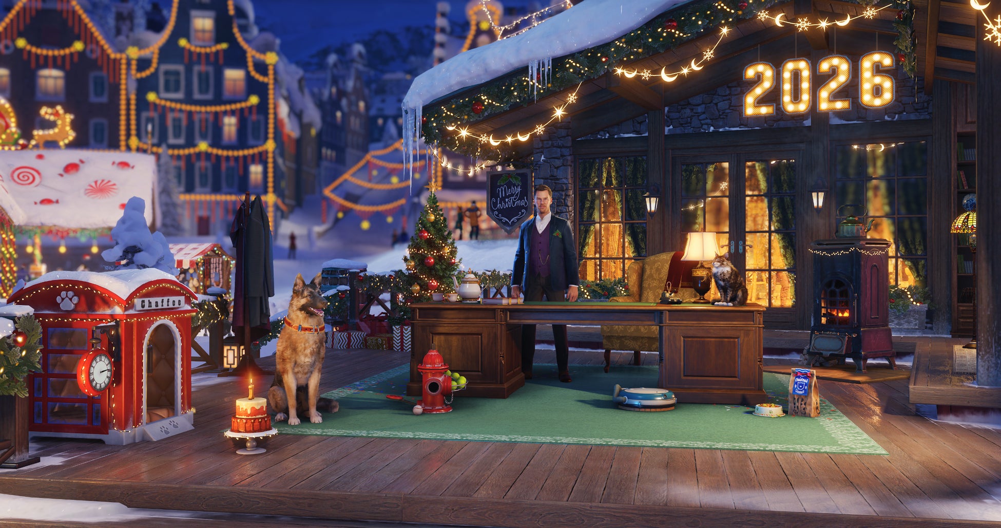 「ビレッジ」のヘッドクォーターでは、ホリデーアンバサダーであるベネディクト・カンバーバッチがプレイヤーを出迎え、特別なアサインメントを提示します。その過程で、人生にまつわるささやかな知恵を授けたり、心に響くストーリーを語ったりもしてくれます。彼のアサインメントを完了すると、個性的な2種類の2Dスタイルや特別なデカール、テーマに沿った銘刻など、彼ならではのカスタマイズアイテムが戦車長への報酬として授与されます。
