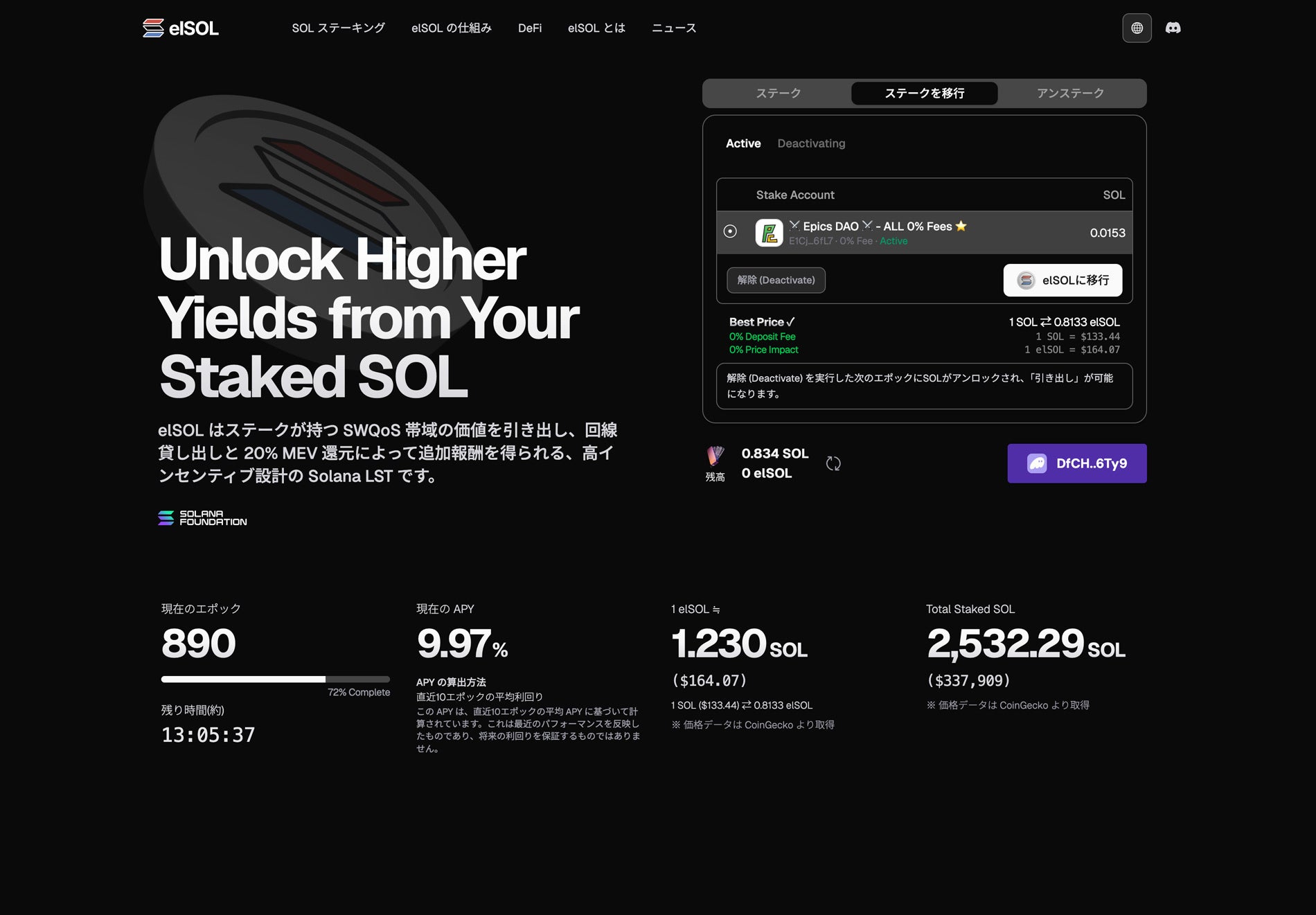 ELSOUL LABO B.V.(本社:オランダ・アムステルダム、代表取締役CEO:川崎文武)と Validators DAO は、Solana 向け Liquid Staking Token(LST)「elSOL」のステーキングUIを刷新しました。