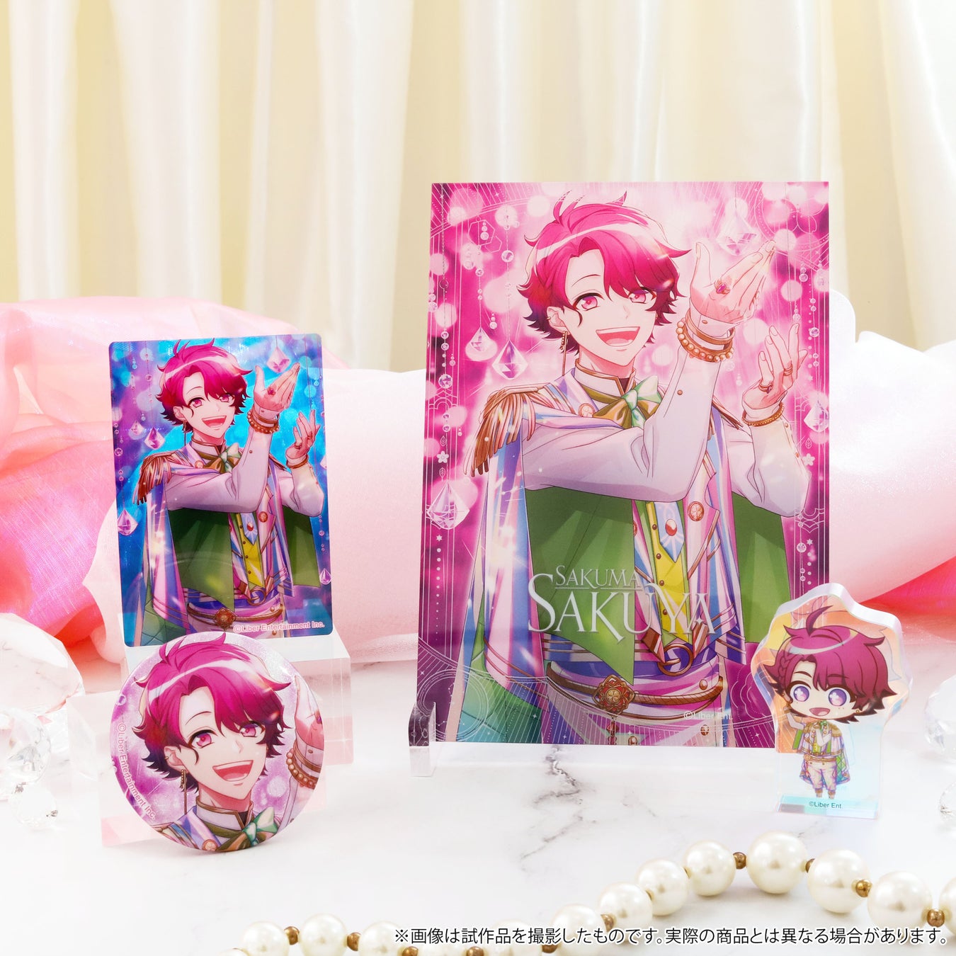 アクリルパネル、缶バッジ、オーロラアート、ころっとアクリルフィギュアの豪華4点セット!どれも美しい仕上がりとなっております。