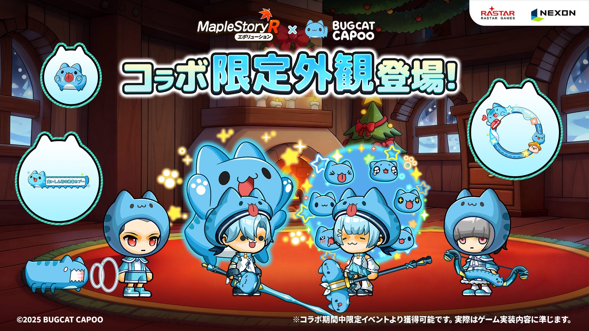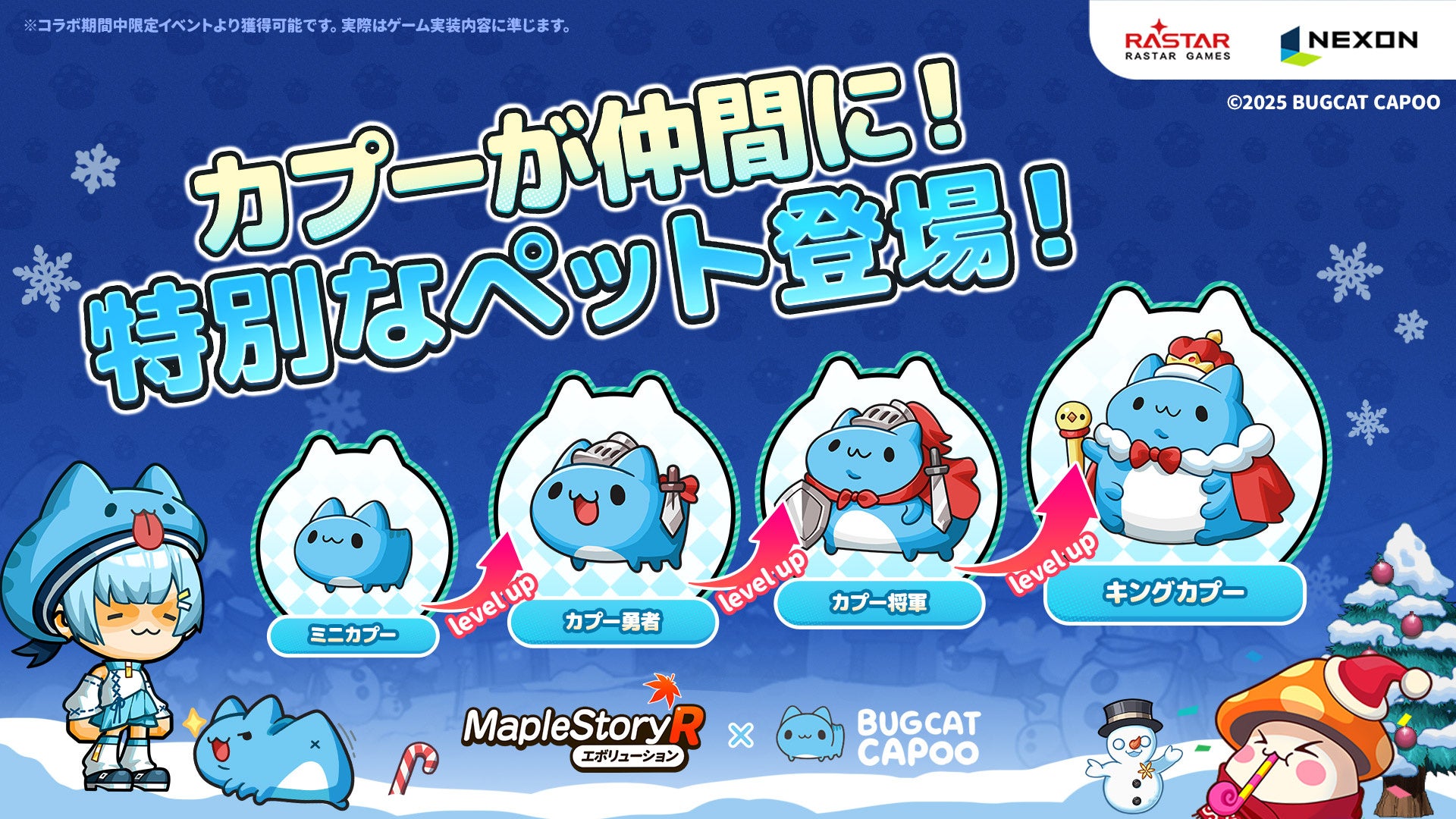 ネクソン完全監修の冒険RPG『メイプルストーリーR: エボリューション』において、台湾で大人気のキャラクター「Bugcat Capoo(バグキャットカプー)」とのコラボイベントを、2025年12月9日(火)より期間限定で開催することをお知らせいたします。