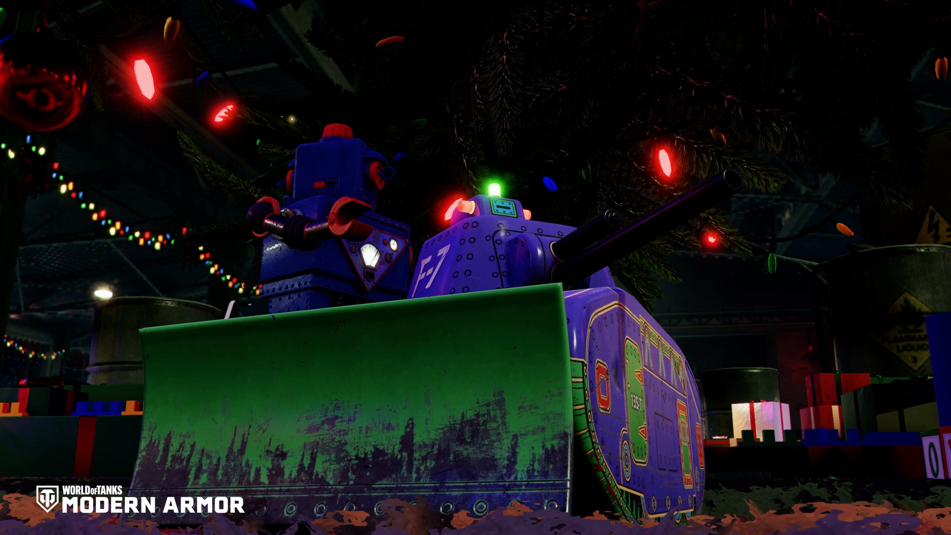 お祝いは、2025年12月9日(火)~12月22日(月)に実施される人気イベント「オモチャの戦車」モードの復活から始まります。このモードでは、2チーム各10輌によるリスポーンありのスピーディーなバトルが、ツリーの下で繰り広げられます。各「オモチャの戦車」はそれぞれ固有の兵装を備えており、ドーザーブレードを装備し体当たり攻撃に特化した新車輌「ドーザーマスター」も登場します。各チームには、新たな味方として巨大なオモチャのロボットも加わります。このロボットは強力な支援攻撃を放つほか、撃破すると本イベント専用通貨である「雪玉」をドロップします。なお、プレイヤーからの要望に応え、「オモチャの戦車」モードの開催期間は2週間に延長されました。これにより、当イベントを楽しめる時間が従来の2倍となっています。