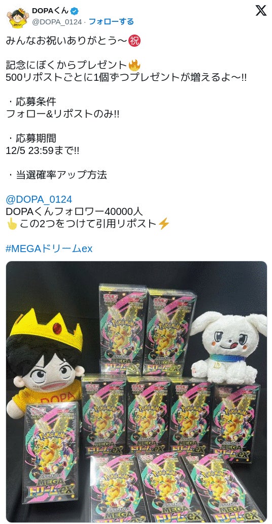2025年12月、「DOPAオリパ」の公式Xアカウント(@DOPA_Oripa)のフォロワー数が13万人となりました。