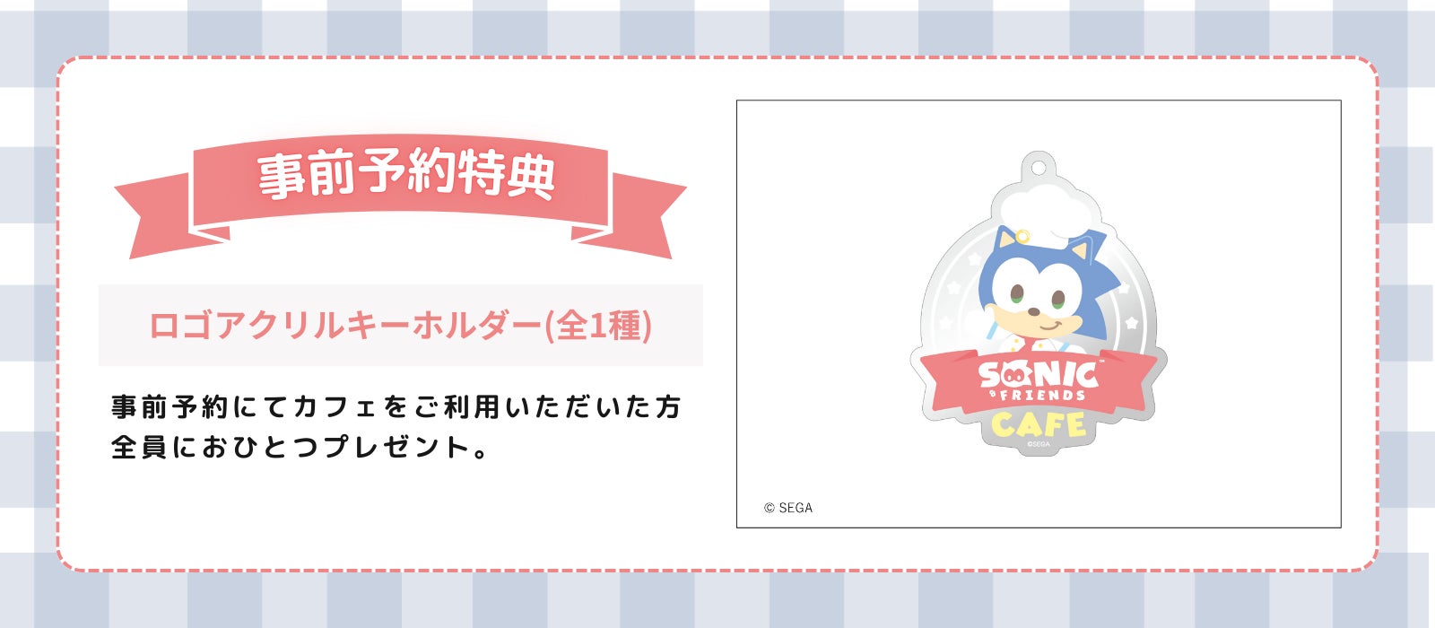 コラボカフェでは、限定のフードメニューや今回のために描き下ろした、キュートなソニックたちのイラストを使用したグッズの販売を予定しております。