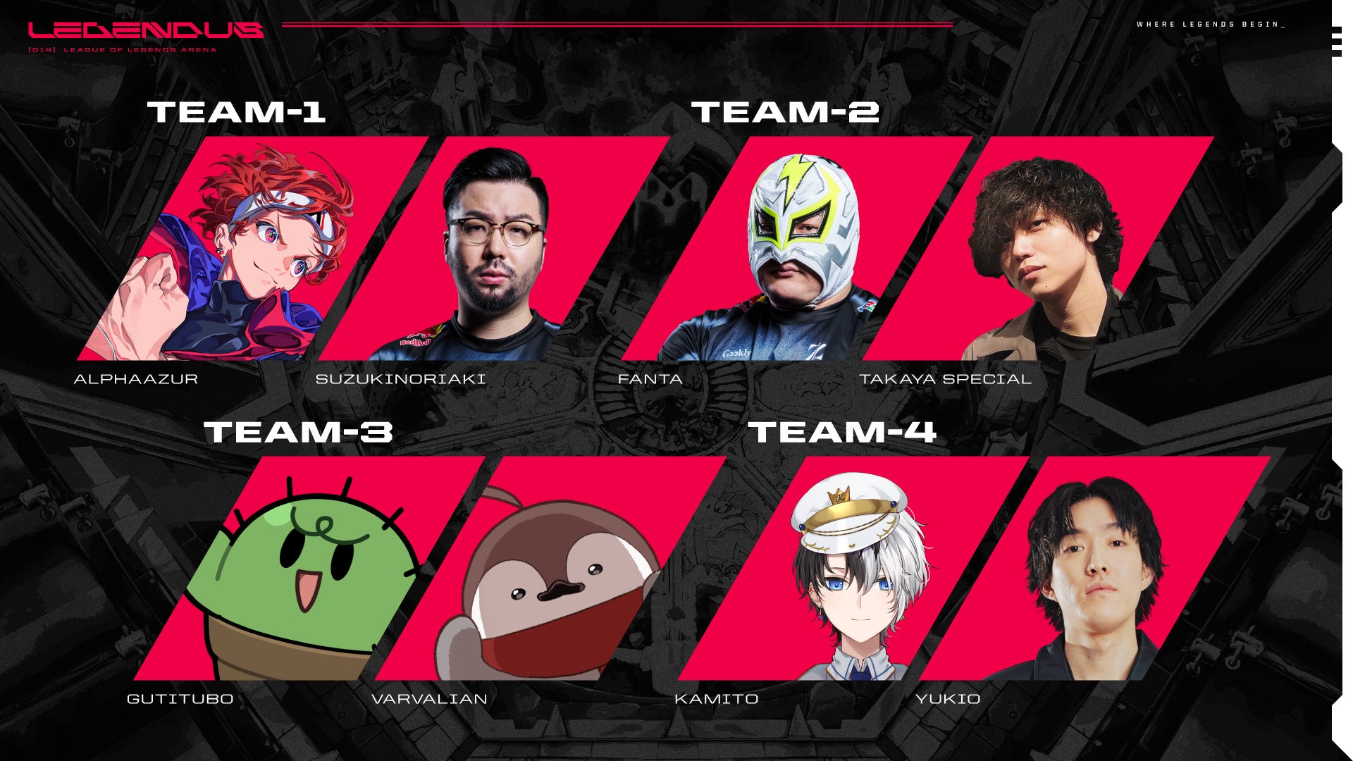 今回の『LEGENDUS League of Legends Arena Supported by Riot Games』では人気ストリーマー16名が集結。それぞれペアを組み、熱きチーム戦が繰り広げられます。