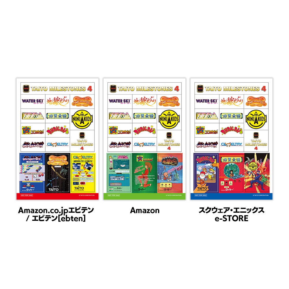 また、ショップ特典として、本作に収録されたタイトルからセレクトしたサウンドトラックを収めたスペシャルCD「タイトーサウンドマイルストーン4」および、オリジナルステッカーをご用意いたしました。