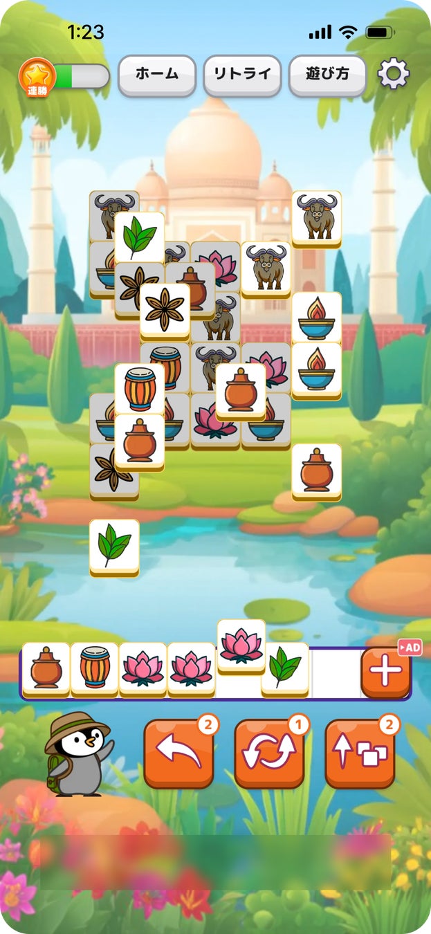 「世界旅行」をテーマにした10エリアをご用意しました。1エリアにつき10ゲームを収録し、エリア内の全ゲームをクリアすると次のエリアへ移動できます。各ステージをクリアしていくたびに、世界を巡るような達成感が味わえます。全エリアをクリアすると世界一周達成となり、2周目をスタートできます。